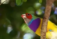 七彩文鸟是梅花雀科、鹦雀属鸟类。头部羽色有黑、红、黄之别。幼鸟体色初期为灰色,下部较淡,腹白;背部为橄榄绿,胸部呈葡萄色,成熟后面部会变成红色或黄色。雄性背部绿色,紫色胸前有圆形或椭圆形斑块,…全部>>