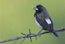 文鸟,是雀形目文鸟科文鸟属等雀类的通称,常见的有白腰文鸟和灰文鸟。其体长13至14厘米,头部、喉部和尾部均为黑色;两额有白斑,眼周围有红色眼圈;喙呈淡红色;背部及翅膀为苍灰色,腹部浅红色;雌雄基本同色,…全部>>