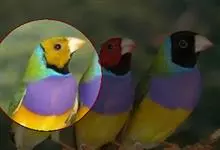 七彩文鸟是梅花雀科、鹦雀属鸟类。头部羽色有黑、红、黄之别。幼鸟体色初期为灰色,下部较淡,腹白;背部为橄榄绿,胸部呈葡萄色,成熟后面部会变成红色或黄色。雄性背部绿色,紫色胸前有圆形或椭圆形斑块,…全部>>