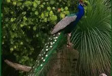 绿孔雀是鸡形目雉科孔雀属鸟类,别名:孔雀、越鸟、爪哇绿孔雀。雄性绿孔雀全身呈翠绿色,并反紫铜色光。头顶有一簇直立的冠羽,尾上复羽发达的约长1米,每羽端部有一个蓝色和翠绿色镶嵌的眼状斑,…全部>>