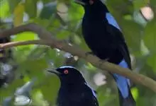 和平鸟中型鸟类,体长24~28厘米。眼红色,嘴、脚黑色。雄鸟从头顶到尾上覆羽等整个上体辉蓝色具紫色光泽,其余体羽黑色。雌鸟通体铜蓝色,仅飞羽黑褐色。常见的低地留鸟,…全部>>