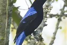 和平鸟中型鸟类,体长24~28厘米。眼红色,嘴、脚黑色。雄鸟从头顶到尾上覆羽等整个上体辉蓝色具紫色光泽,其余体羽黑色。雌鸟通体铜蓝色,仅飞羽黑褐色。常见的低地留鸟,…全部>>
