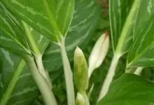 彩叶万年青 Schott)是天南星科、花叶万年青属较矮小亚灌木。茎粗壮,上升,上部直立。叶柄具鞘,绿色,具白色条状斑纹;叶片长圆形至卵状长圆形,中肋宽厚,侧脉表面下凹,花序柄短。佛焰苞骤尖,绿色或白…全部>>