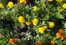 万寿菊是菊科万寿菊属一年生草本植物,别名孔雀菊、缎子花、臭菊花、西番菊、红黄草、小万寿菊、臭芙蓉、孔雀草。万寿菊茎近基部分枝。叶羽状分裂,长5-10厘米,宽4-8厘米,裂片长椭圆形或披针形,具锐齿,…全部>>