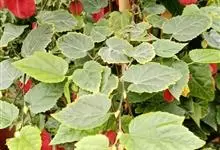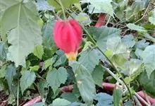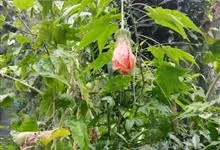 红萼苘麻是锦葵科、苘麻属常绿软木质灌木,叶绿色,长5-10厘米,心形,叶端尖,叶缘有钝锯齿,有时分裂,有细细的叶柄;叶互生,掌状叶脉;花单生于叶腋,具长梗,下垂;花萼红色,半套着大约4厘米长的花瓣,…全部>>