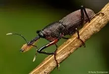 甘薯小象甲是鞘翅目蚁象科甘薯小象甲属昆虫,又称甘薯蚁象、甘薯象、番薯臭虫。成虫除触角、前胸、中胸、足为赤褐色外,鞘翅、腹部为暗蓝色,有金属光泽;体型细长,…全部>>