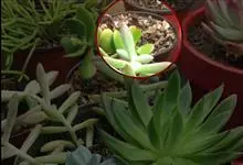 乙女心是景天科景天属的多肉植物,原产墨西哥。多年生亚灌木,茎叶肉质,株高5-30厘米。叶片簇生于茎顶,圆柱状,淡绿色或淡灰蓝色,叶先端具红色,叶长3~4厘米。花小,黄色。春秋为生长季,…全部>>