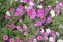 细叶美女樱 Cabrera)是马鞭草科美女樱属植物。茎基部稍木质化,甸甸生长,节部生根。株高20-30厘米,枝条细长四棱,微生毛。叶对生,二回羽状深裂。穗状花序顶生,开花呈碎状花序顶生短缩呈伞房状,…全部>>