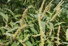 反枝苋是苋科苋属的一年生草本植物。株高达1米;茎密被柔毛;叶菱状卵形或椭圆状卵形,先端锐尖或尖凹,两面及边缘被柔毛,下面毛较密;穗状圆锥花序,顶生花穗较侧生者长;花被片长圆形或长圆状倒卵形,…全部>>