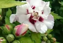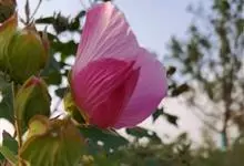 海滨木槿是锦葵科木槿属植物,落叶小乔木,株高3-5米,胸径20厘米,扁球形树冠,枝叶繁盛。厚纸质单叶互生,扁圆形、倒卵形或宽倒卵形,先端钝近平,具短突尖,基部圆形或浅心形,叶缘中上部具细圆齿,…全部>>