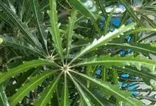 孔雀木 Lowry et Frodin)又名:手树,属伞形目,五加科常绿观叶小乔木或灌木。原产于澳大利亚和太平洋群岛。叶面革质,暗绿色,状似细长的手指,具粗齿锯的叶缘,呈放射状着生,交错排列。…全部>>