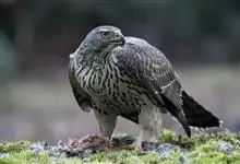 苍鹰是中小型猛禽。体长可达60厘米,翼展约1.3米。头顶、枕和头侧黑褐色,枕部有白羽尖,眉纹白杂黑纹;背部棕黑色;胸以下密布灰褐和白相间横纹;尾灰褐,有4条宽阔黑色横斑,尾方形。飞行时,双翅宽阔,…全部>>