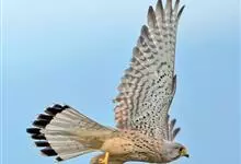 红隼:是隼科、隼属的小型猛禽之一。体重173-335克,体长305-360毫米。翅狭长而尖,尾亦较长,外形和共同爪隼非常相似。雄鸟头蓝灰色,背和翅上覆羽砖红色,具三角形黑斑;腰、尾上覆羽和尾羽蓝灰色,…全部>>