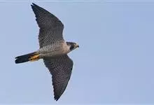 游隼yóu sǔn:是隼科、隼属的中型猛禽,共有18个亚种。体长41-50厘米。翅长而尖,眼周黄色,颊有一粗著的垂直向下的黑色髭纹,头至后颈灰黑色,其余上体蓝灰色,尾具数条黑色横带。…全部>>