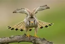 红隼:是隼科、隼属的小型猛禽之一。体重173-335克,体长305-360毫米。翅狭长而尖,尾亦较长,外形和共同爪隼非常相似。雄鸟头蓝灰色,背和翅上覆羽砖红色,具三角形黑斑;腰、尾上覆羽和尾羽蓝灰色,…全部>>