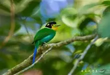 三宝鸟佛法僧科三宝鸟属的鸟类,为佛法僧目三宝鸟属下的一种中小型攀禽,共有10个亚种,体长26-29厘米,体重107-194克。通体蓝绿色,头和翅较暗,呈黑褐色,初级飞羽基部具淡蓝色斑,飞翔时甚明显。…全部>>