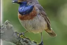 蓝点颏亦称“蓝喉歌鸲”,通称蓝靛颏儿。身体大小和麻雀相似,体长12-13厘米,体重17-18克。头部、上体主要为土褐色。眉纹白色。尾羽黑褐色,基部栗红色。颏部、喉部辉蓝色,下面有黑色横纹。下体白色。…全部>>