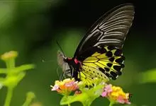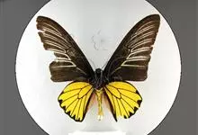 金裳凤蝶是凤蝶科、裳凤蝶属的动物。金裳凤蝶身体呈黑色,头、颈和胸侧有红毛,腹部有黑黄两色相间条纹,雄蝶前翅黑色,具黑天鹅绒光泽,各脉两侧灰白色,后翅金黄色,各室外缘有等腰三角形黑斑1枚,斑内侧有晕,…全部>>