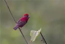 酒红朱雀小型鸟类,体长13~15厘米。雄鸟通体深红色,头部深朱红或棕红色,下背和腰玫瑰红色,眉纹粉红色而具丝绢光泽。两翅和尾黑褐或灰褐色、具暗红色狭缘,内侧两枚三级飞羽具淡粉红色先端。…全部>>