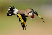 红额金翅雀:共有14个亚种。小型鸟类,体长12-14厘米。额、脸颊和颏朱红色,眼先和眼周黑色,在淡色的头部极为醒目。上体灰褐或乌褐色,尾上覆羽白色,两翅和尾黑色,翅上有黄色斑。下体喉、胸灰褐或乌褐色…全部>>