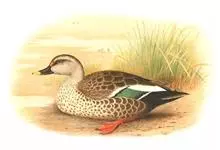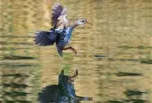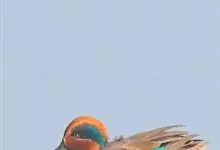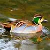 绿翅鸭是小型鸭类,体长37厘米,体重约0.5千克。嘴脚均为黑色。雄鸟头至颈部深栗色,头顶两侧从眼开始有一条宽阔的绿色带斑一直延伸至颈侧,尾下覆羽黑色,两侧各有一黄色三角形斑,在水中游泳时,极为醒目。…全部>>