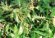 竹叶草 P. Beauv.)是禾本科求米草属一年生草本植物。杆纤细,基部平卧,节着地生根;叶披针形至卵状披针形,基部包茎但不对称;圆锥花序,分枝延伸互生而疏离,小穗李生;颖草质,边缘被有纤毛,…全部>>