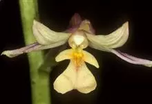 峨眉虾脊兰是兰科虾脊兰属植物,植株高约25厘米,假鳞茎很短,叶在花期全部展开,椭圆形或长圆形,花葶出自叶丛中央,直立,总状花序长约4厘米,疏生少数花,萼片和花瓣淡黄色,具紫红色的脉纹,花期7月。…全部>>