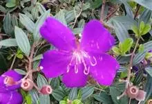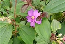 野牡丹:灌木,高0.5-1.5米,分枝多;茎钝四棱形或近圆柱形,毛扁平边缘流苏状。叶片坚纸质,卵形或广卵形,全缘,7基出脉,两面被糙伏毛及短柔毛。伞房花序生于分枝顶端,近头状,…全部>>
