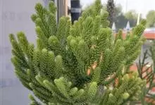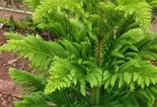澳洲杉,常绿乔木,一般盆栽为幼树,高在2米以下。喜温暖、潮湿的环境,树冠尖塔形,深绿色。茎干直立,侧枝轮生,水平伸展。小枝二列互生,水平延伸或略下垂。叶有二型。球果近圆形。 全部>>