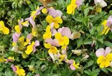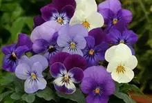 角堇:为堇菜科堇菜属多年生草本植物。株高10-30厘米 ,宽幅20-30厘米。具根状茎。茎较短而直立,分枝能力强。花两性,两侧对称,花梗腋生,花瓣5,花径 2.5-4.0厘米。花色丰富,…全部>>