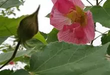 木芙蓉,锦葵科木槿属落叶灌木或小乔木。小枝上有细绒毛;叶片为卵状心形,托叶为披针形,常早落;花单生,花萼为钟形,花冠初为白色或淡红色,后逐渐变为深红色;果实为扁球形,有淡黄色的毛附着。花期8到10月。…全部>>