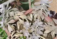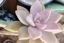 胧月 E.Walther)是景天科,风车草属多肉植物,常绿蔓生亚灌木,叶肥厚无柄,灰蓝色,阳光充足时呈粉红色,叶片枝顶簇生成莲座状,乳白色,花冠5裂,上有紫红色斑点,雄蕊两轮排列,花药鲜红色,…全部>>