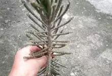 棒叶落地生根是景天科、落地生根属植物。茎直立、粉褐色。叶圆棒形,上表面有沟、粉色,有红褐斑。叶片交互对生,交叉排列成十字形。叶端锯齿上长有很小的幼株、落地后即可生根成活。原产非洲马达加斯加。…全部>>