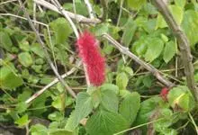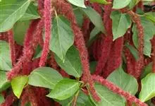 红穗铁苋菜:为大戟科、铁苋菜属植物,灌木,高0.5-3米。嫩枝被灰色短绒毛,毛逐渐脱落,小枝无毛。 花序色泽鲜艳,葇荑花序下垂,如狐狸尾状,雌花近卵形,长约0.8毫米,顶端急尖,具短毛;子房近球形,…全部>>