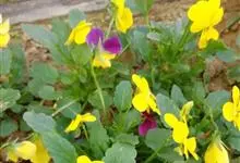 角堇:为堇菜科堇菜属多年生草本植物。株高10-30厘米 ,宽幅20-30厘米。具根状茎。茎较短而直立,分枝能力强。花两性,两侧对称,花梗腋生,花瓣5,花径 2.5-4.0厘米。花色丰富,…全部>>