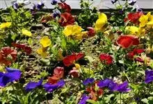 角堇:为堇菜科堇菜属多年生草本植物。株高10-30厘米 ,宽幅20-30厘米。具根状茎。茎较短而直立,分枝能力强。花两性,两侧对称,花梗腋生,花瓣5,花径 2.5-4.0厘米。花色丰富,…全部>>