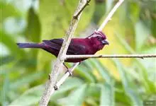 酒红朱雀小型鸟类,体长13~15厘米。雄鸟通体深红色,头部深朱红或棕红色,下背和腰玫瑰红色,眉纹粉红色而具丝绢光泽。两翅和尾黑褐或灰褐色、具暗红色狭缘,内侧两枚三级飞羽具淡粉红色先端。…全部>>