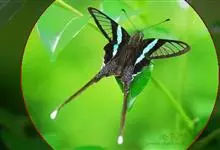 青带凤蝶Graphium sarpedon ,又名青凤蝶,是最普遍的中型凤蝶,飞行速度很快。青带凤蝶的翅膀中央有许多浅蓝色的斑点,很整齐地排列成一条直线。这些斑点由上而下逐渐变大,就像一条青色的带子。全部>>