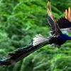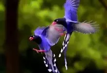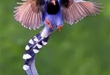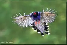 台湾蓝鹊:体长64至65厘米,翼展18至21厘米,尾长约40厘米,尾羽长占了总体长的三分之二。头、脸、颈、喉、胸都是黑色,黄色的眼珠包围黑色的瞳孔,鲜红色的鸟喙、双脚,…全部>>