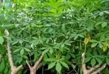 木薯,为大戟科木薯属的一种直立灌木,又名木番薯、树薯。木薯高1.5-3米;块根圆柱状。叶纸质,轮廓近圆形;裂片倒披针形至狭椭圆形;托叶三角状披针形。圆锥花序顶生或腋生,花萼带紫红色且有白粉霜。…全部>>
