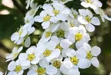 三裂绣线菊是灌木,高1-2米;小枝细瘦,开展,叶片近圆形,伞形花序具花15-30朵;苞片线形或倒披针形,萼筒钟状,花瓣宽倒卵形,蓇葖果开张,花柱顶生稍倾斜,具直立萼片。花期5-6月,果期7-8月。…全部>>