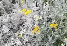 银叶菊,是菊科疆千里光属多年生草本植物。银叶菊的茎灰白色,植株多分枝;叶回羽状裂,正反面均被银白色柔毛;头状花序集成伞房花序,舌状花小,金黄色,管状花褐黄色;花期为6-9月。银叶菊原产于地中海沿岸地区,…全部>>