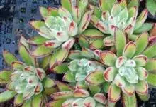 锦晃星是景天科、石莲花属多肉植物。多年生小灌木状多浆植物,灰绿色卵状倒披针形肥厚肉质叶轮状互生,全缘,椭圆尖头,长3-4厘米,宽2-2.5厘米,厚约1厘米,玲凉季节阳光下,叶端及上缘呈红色。…全部>>