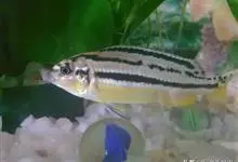 非洲凤凰是最早从马拉维湖出口的慈鲷之一。体长约15厘米,捕食性鱼类。幼鱼为鲜黄色,身体上半部分两条黑色条纹从吻延伸到尾鳍。 背鳍上也有一条黑色条纹。成年以后的雌鱼依然保持着这种体色,…全部>>