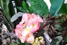 虎刺梅:别称铁海棠,是蔓生灌木植物。茎多分枝,长60-100厘米,直径5-10毫米,具纵棱,密生硬而尖的锥状刺,刺长1-1.5厘米,直径0.5-1.0 毫米,常呈3-5列排列于棱脊上,呈旋转。叶互生…全部>>
