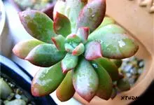 红稚莲是景天科石莲花属的多肉植物。叶片长匙形,先端稍尖,叶面光滑无粉,叶背有凸起的龙骨,叶片翠绿色或深绿色,光照充足、温差加大后,叶尖和叶片上端会变成紫红色,叶片也会变成淡绿中泛白的颜色。…全部>>