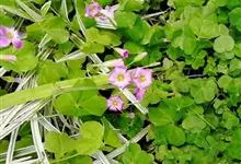 红花酢浆草别名铜锤草、大酸味草、幸运草等,是酢浆草科酢浆草属的多年生直立草本植物。其无地上茎,地下部有球状鳞茎;叶基生,叶柄长5~30cm或更长,被毛;花瓣5,倒心形,淡紫色至紫红色,基部颜色较深。…全部>>