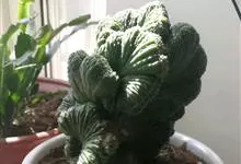 麒麟掌,是大戟科大戟属多年生植物。为金刚纂的带化变异变种。麒麟掌的株乳汁丰富;它的茎圆柱状,上部多分枝,绿色;叶互生,稀少,常生于嫩枝顶端脊上,倒卵形、倒卵状长圆形或匙形,顶端钝圆,具小凸尖,全缘,…全部>>