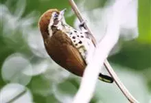 斑姬啄木鸟是鴷形目啄木鸟科姬啄木鸟属鸟类,又叫姬啄木鸟、小啄木鸟。体长9-10厘米。嘴尖而略粗壮,灰黑色;额棕色,向颈后逐渐过渡至橄榄绿色;眉纹白色,过眼纹黑褐色,其下有一白纹,…全部>>