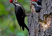 橡树啄木鸟:体长20-23厘米。前额灰黄色,头顶、后颈红色。喉下部、腰和腹部白色,腹部有细的黑色纵条纹。其余体羽为黑色。嘴黑色。腿、脚暗灰色。栖息于山区林地中。结群活动。以昆虫以及植物坚果、果实等为食。…全部>>
